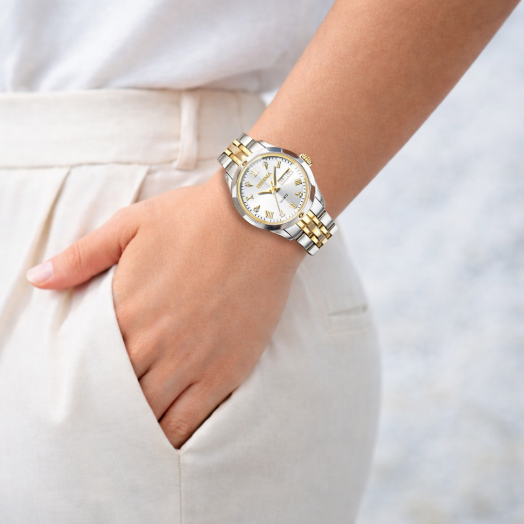 Built with a comfortable strap and reliable movement, this watch is perfect for everyday wear. Its slim profile sits elegantly on the wrist. Designed for women who value both beauty and function.