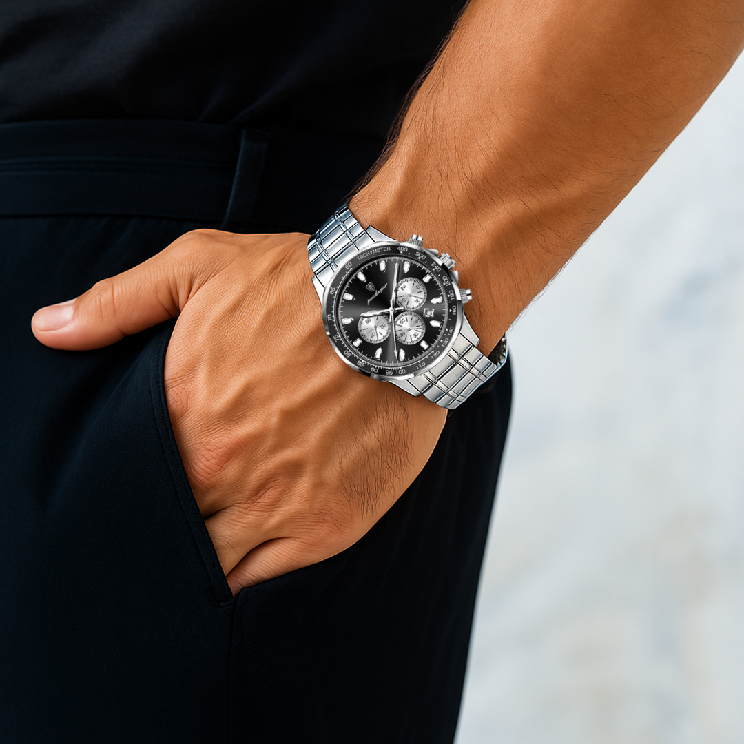 • Functional Chronograph: Includes three subdials and date display for daily use.
