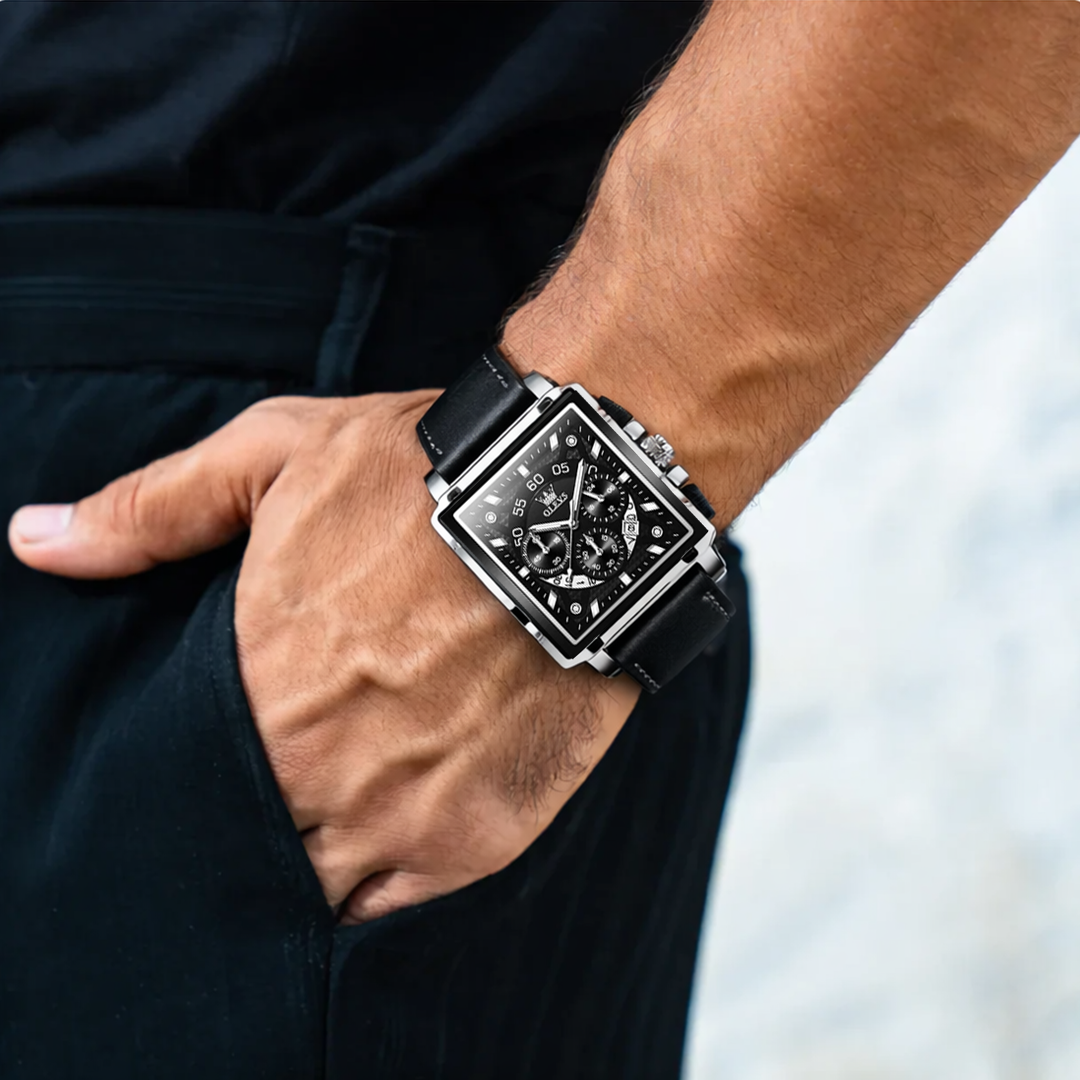 Joseph stands out with its bold square case design—offering a fresh twist on the classic chronograph. Paired with a comfortable leather strap, this watch balances eye-catching style with everyday wearability.
