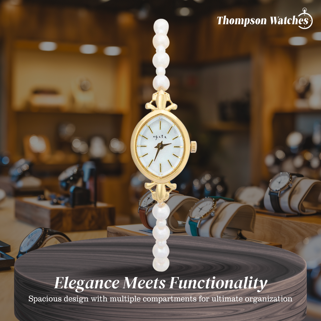 The Lunavine Gold Pearl Accent Women’s Bracelet Watch blends elegance and sophistication in a design that’s perfect for special occasions or adding a refined touch to everyday wear. Its oval gold-tone case, paired with lustrous pearl accents, creates a graceful and feminine look.